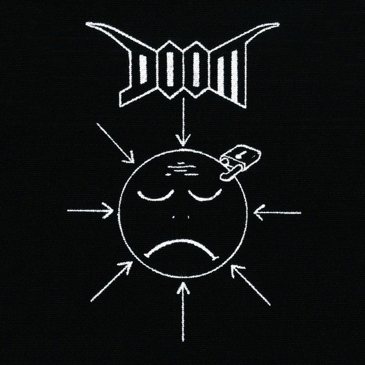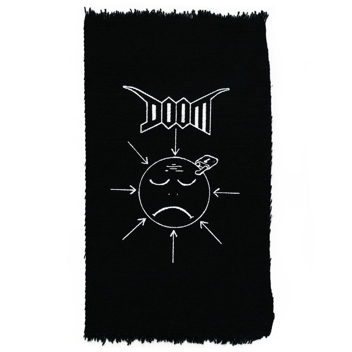 Patch of Heavy Metal Crustcore band Doom from England with a frownie face image.