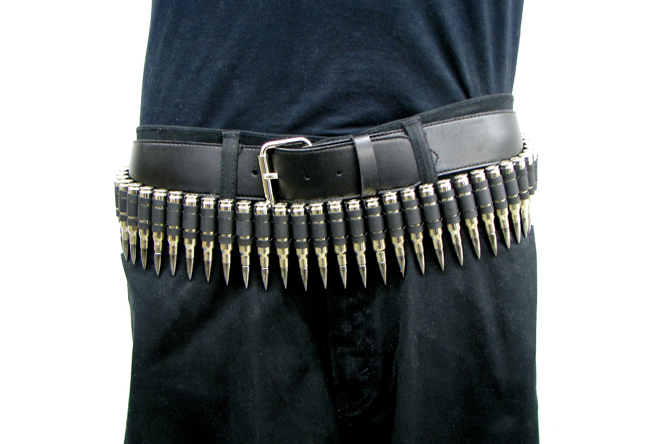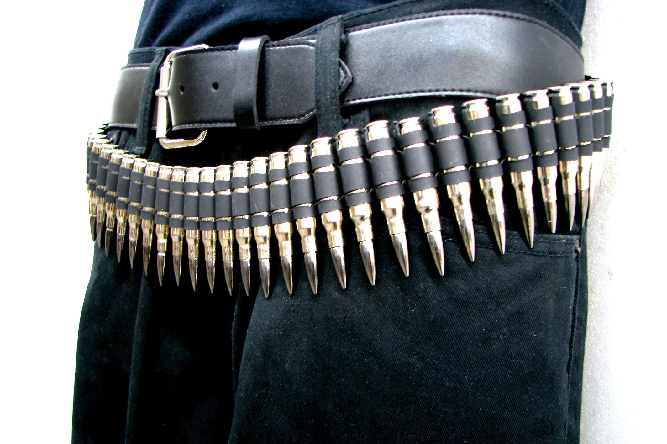FAQ: I live outside the USA, can I import a Bullet Belt? The items we sell have been altered to make them dead - dummy rounds. These items are confusing to some customs officials as to how to handle them. We advise that if you live outside the USA, call your customs officials and ask if it is OK to ship these into your country. Describe them as "costume metal belts" that are often used for theatre props and costume work. Make sure they know that these are fake and inert, and in no way are harmful or loaded rounds. They are completely safe as shipping any type of metal object. Please note: We make no claim that these items are legal to ship to your country, we claim that if you order them, you take full responsibility in knowing the laws of your country and that you are telling us that it is safe to ship them. We will not refund any item seized by your countries officials.
